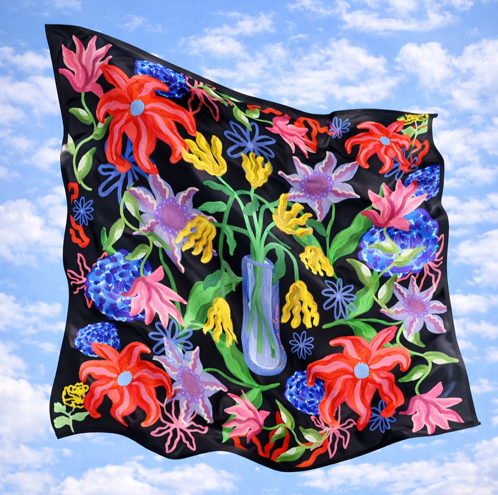 Los pañuelos de Ana Clerici son piezas de edición limitada que fusionan arte y diseño. Estampados en seda vegana, reúnen suavidad, color y versatilidad: perfectos para usar en el día a día, regalar o enmarcar como una obra única.